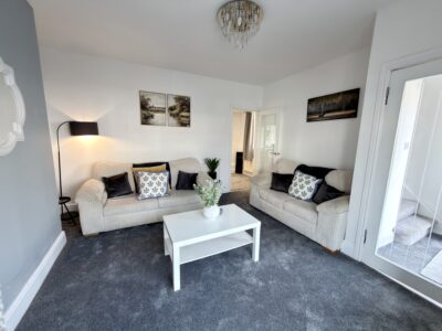 A stylish 2-bedroom home featuring sleek grey neutral décor, perfect for families, couples, and professionals seeking a calm and comfortable stay in Darlington.
