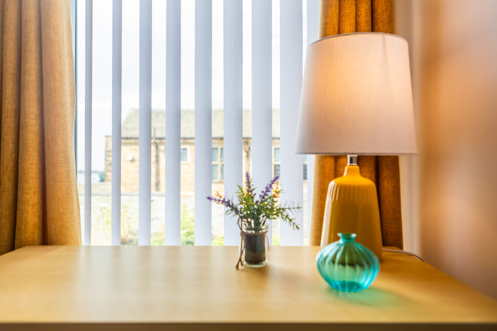 The living area features plush seating, statement lighting, and a flat-screen TV, while the well-equipped kitchen includes everything you need for a comfortable stay. Two inviting bedrooms offer restful spaces with personality and comfort, making this the ideal base for couples, families, or professionals visiting nearby Darlington or Durham.