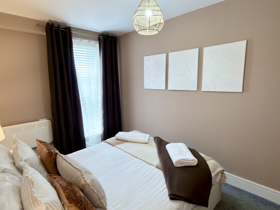 Two well-sized bedrooms—one king-size and one twin/single—both with ample wardrobe storage