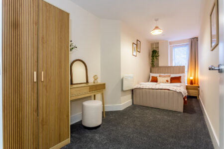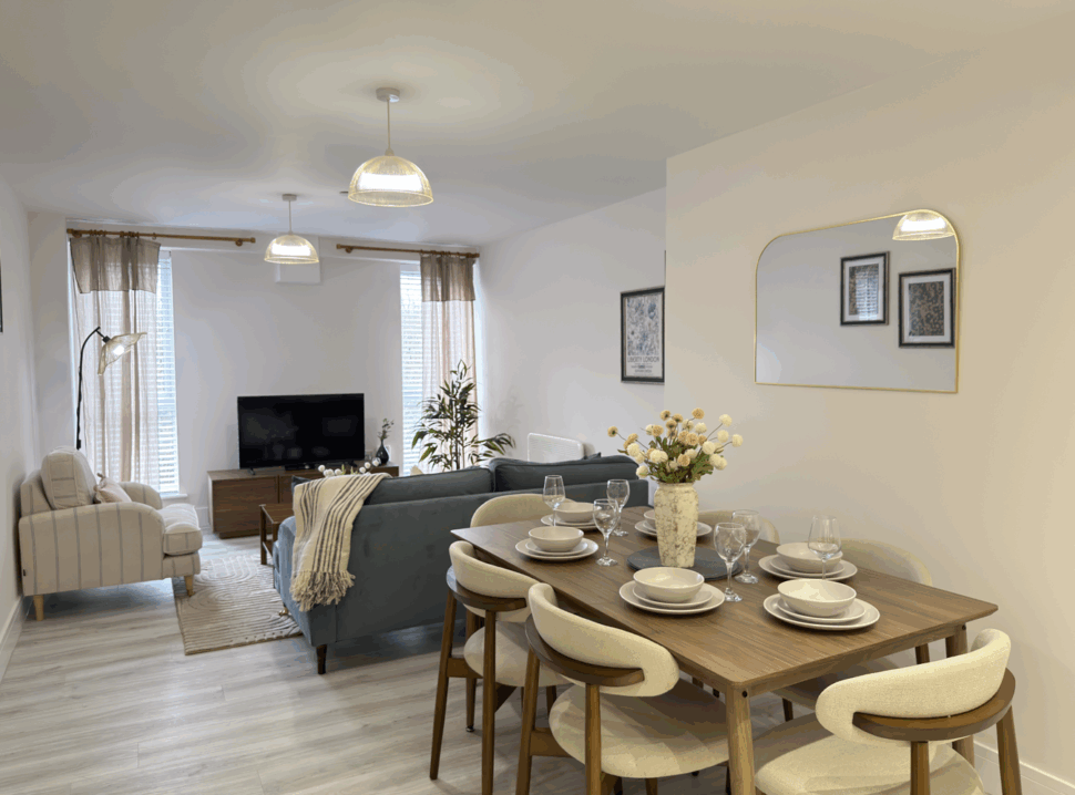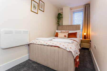 Welcome to The Bluebell—a beautifully presented 2‑bedroom, 1‑bathroom apartment situated on the third floor of Parsons House in Washington. Designed with warm, soothing tones, this inviting space blends comfort and modern style, making it an ideal base for professionals, couples, or families visiting the North East.